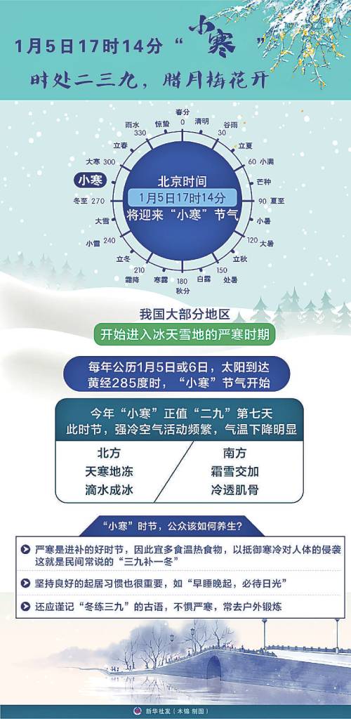 1月5日17時(shí)14分“小寒” 時(shí)處二三九,臘月梅花開