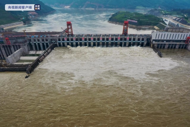 在大藤峽水利樞紐工程現場,21個泄水閘門中已抬起敞開泄洪,出庫流量由9000立方米/秒加大至17000立方米/秒,降低壩面水位至汛限水位47.6米以下,保證工程防汛安全。