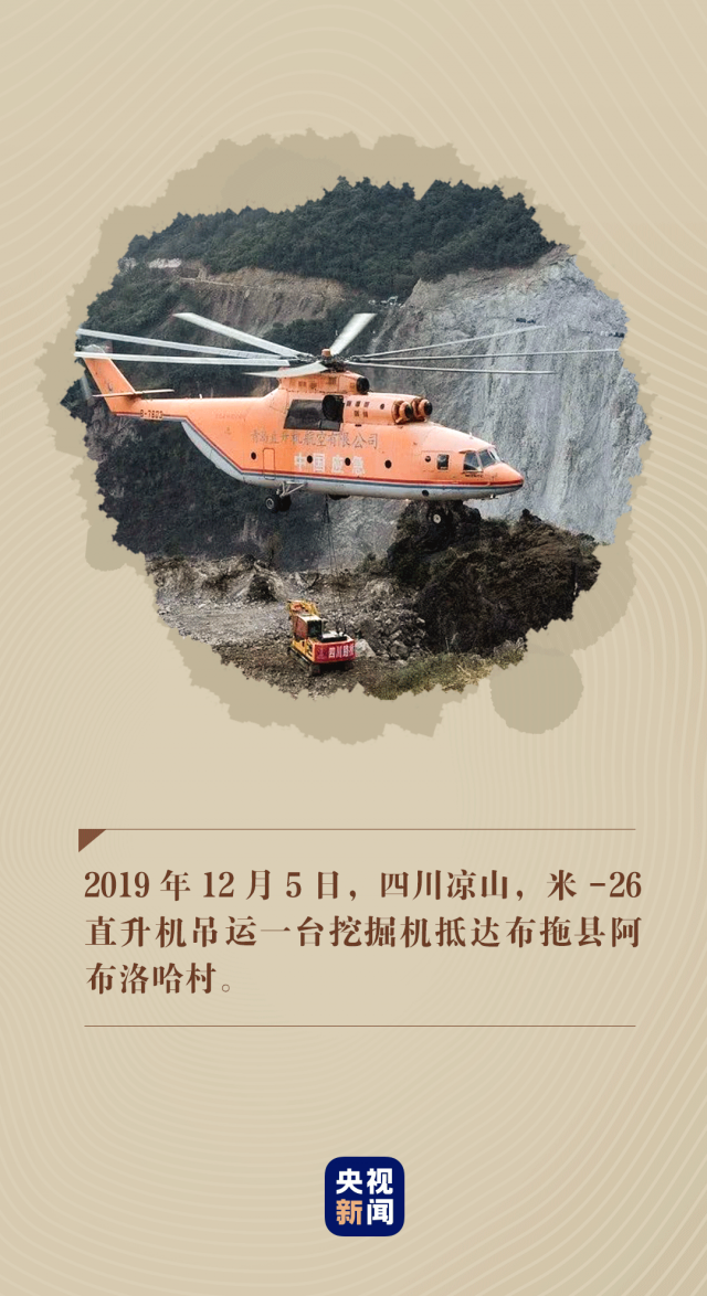 2019年11月30日,一架米-26直升機(jī)出現(xiàn)在村子上空。僅用八天時(shí)間,這架直升機(jī)成功將挖掘機(jī)、裝載機(jī)、潛孔鉆機(jī)一一運(yùn)到村里,朝著最后的一公里掘進(jìn)。