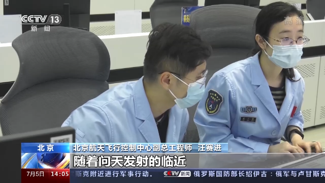 北京航天飛行控制中心副總工程師 汪賽進:我們今天(7月4日)剛完成為問天發(fā)射進行的調(diào)相控制。隨著問天發(fā)射的臨近,正在策劃就是天舟三號的離軌相關(guān)工作,在這之前還要利用天舟三號進行變軌,之后在問天發(fā)射前,天舟三號要跟組合體進行分離。