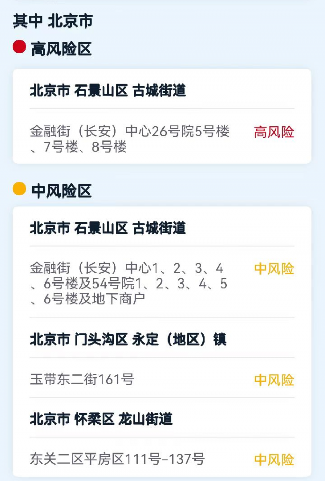 北京現(xiàn)有高、中風險區(qū)1+3個