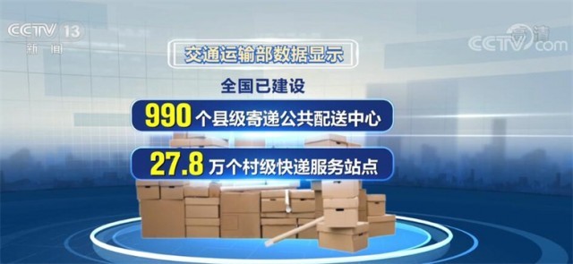 央視網(wǎng)消息:目前,我國正在健全縣、鄉(xiāng)、村三級物流體系,全力打通農(nóng)村消費(fèi)升級和農(nóng)產(chǎn)品上行的末梢循環(huán)。交通運(yùn)輸部數(shù)據(jù)顯示,目前,全國已建設(shè)990個(gè)縣級寄遞公共配送中心、27.8萬個(gè)村級快遞服務(wù)站點(diǎn)。交郵聯(lián)運(yùn)覆蓋2185個(gè)鄉(xiāng)鎮(zhèn)、1.5萬個(gè)村。