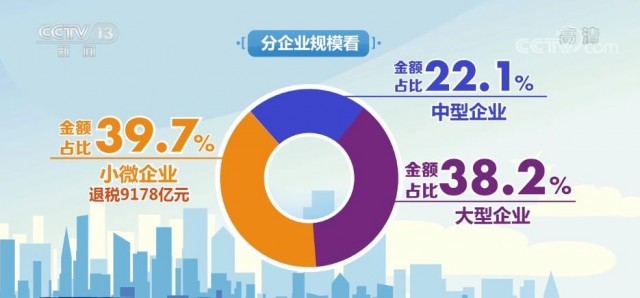 分企業(yè)規(guī)模看,今年以來,已獲得留抵退稅的納稅人中,小微企業(yè)戶數(shù)占比93.1%,是受益主體,共享受退稅9178億元,金額占比39.7%。中型企業(yè)、大型企業(yè)的金額占比分別為22.1%和38.2%。