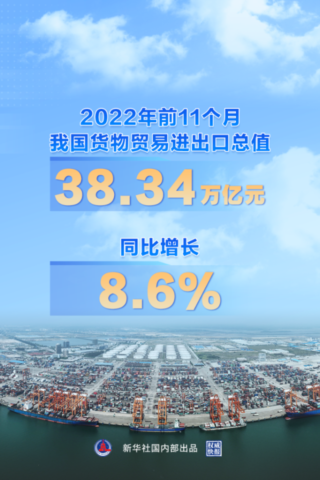前11個月我國貨物貿(mào)易進出口同比增長8.6%