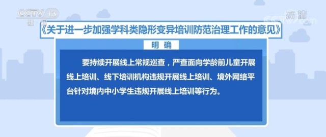 《意見(jiàn)》明確,要持續(xù)開(kāi)展線上常規(guī)巡查,嚴(yán)查面向?qū)W齡前兒童開(kāi)展線上培訓(xùn)、線下培訓(xùn)機(jī)構(gòu)違規(guī)開(kāi)展線上培訓(xùn)、境外網(wǎng)絡(luò)平臺(tái)針對(duì)境內(nèi)中小學(xué)生違規(guī)開(kāi)展線上培訓(xùn)等行為。