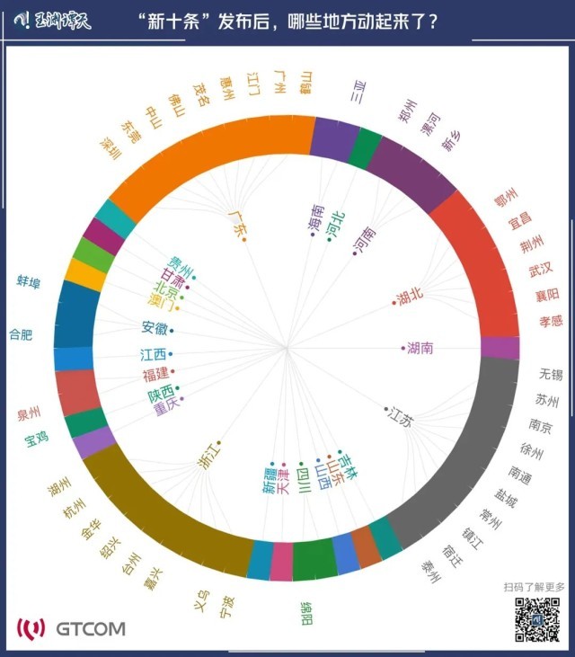 ||通過對公開數(shù)據(jù)的挖掘我們發(fā)現(xiàn),12月7日“新十條”發(fā)布后,多地就立即采取行動,優(yōu)化疫情防控措施