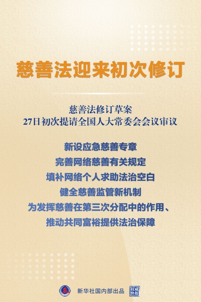 - 慈善法修訂草案提請審議:新設(shè)應(yīng)急慈善專章 完善網(wǎng)絡(luò)慈善規(guī)定 填補(bǔ)網(wǎng)絡(luò)個(gè)人求助法治空白