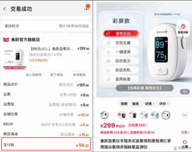 94元購買的血氧儀已漲價(jià)至299元(央廣網(wǎng)發(fā))
