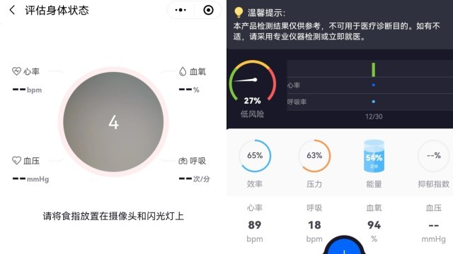 沙憲政分析稱,網(wǎng)上類似小程序和手機(jī)App是經(jīng)由手機(jī)攝像頭攝像,通過測量人體手指尖或面部動脈血管隨心臟搏動引起充盈的波動和顏色的變化(也就是光譜分析),來檢測心率和血氧飽和度等指標(biāo)的。