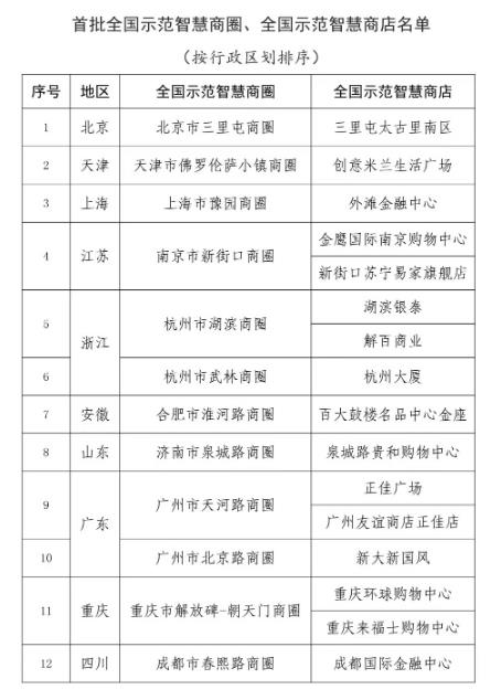 商務部公布首批全國示范智慧商圈、全國示范智慧商店名單