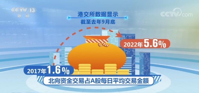 事實上,北向資金從去年末就在持續(xù)加大對中國資產(chǎn)的配置。國際金融協(xié)會統(tǒng)計顯示,去年11月流入中國資本市場的資金達(dá)85億美元,創(chuàng)去年單月新高。港交所數(shù)據(jù)顯示,截至去年9月底,北向資金交易占A股每日平均交易金額,由2017年的1.6%,升至2022年的5.6%。