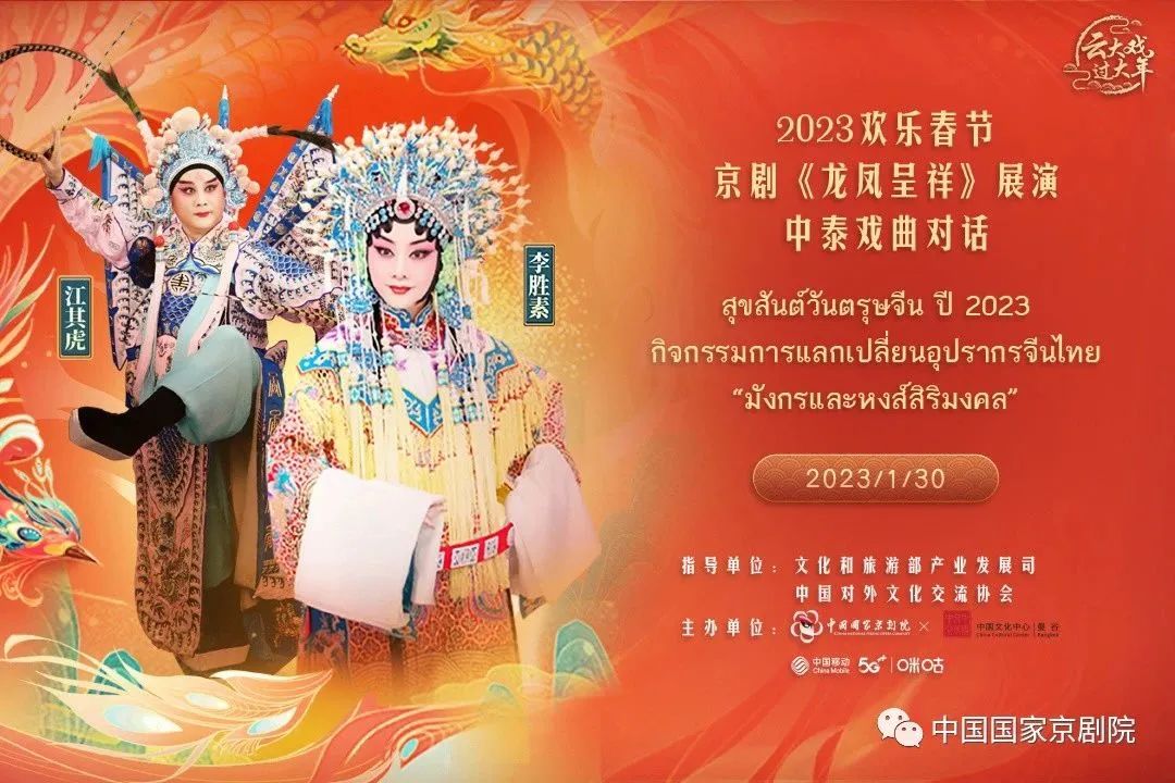 中新網(wǎng)北京1月31日電 據(jù)國家京劇院消息,1月30日,濃濃的年味還未散盡,國家京劇院一團團長、一級演員李勝素,一級演員江其虎等,攜經(jīng)典大戲《龍鳳呈祥》演播參加曼谷中國文化中心歡樂春節(jié)系列活動之一——“京劇《龍鳳呈祥》演播·中泰戲曲對話”活動。劇院藝術(shù)家與泰國觀眾“云端”相見,京劇《龍鳳呈祥》以線上演播的形式,與泰國優(yōu)泰劇展開對話,共慶喜慶祥和的傳統(tǒng)佳節(jié)。中國駐泰國大使館臨時代辦楊欣專門以視頻形式致辭,泰國文化部副常秘玉提佳女士出席活動并代表泰國文化部致辭,曼谷中國文化中心兼駐曼谷旅游辦主任闕小華、曼谷中國文化中心副主任趙歆等近200位各界人士現(xiàn)場參與了活動。