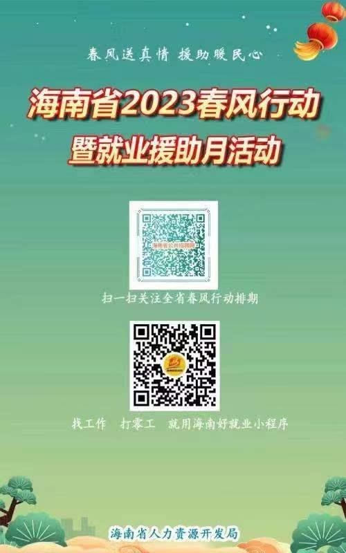 近日,人力資源社會保障部推出的2023年春風行動暨就業(yè)援助月活動正在各地火熱開展。今年,多地還出現(xiàn)了直播帶崗這一新的招聘會模式。人社部將及時發(fā)布各地的活動情況,送崗位到勞動者身邊。大家可以通過掃描下方二維碼,進入網(wǎng)站鏈接或微信小程序進行查看。