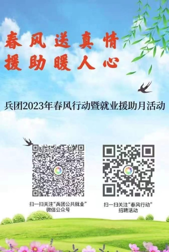 新疆生產(chǎn)建設兵團積極組織開展“就業(yè)訪民情” 活動,動員“訪惠聚”工作隊、團場社會事務辦等基層力量進連入戶摸清就業(yè)需求,開展入戶送崗,廣泛征集更多就業(yè)崗位,開展高頻次、小規(guī)模專場招聘活動,積極為企業(yè)用工搭建平臺。春風行動暨就業(yè)援助月期間,預計將組織100余場線上線下招聘會。