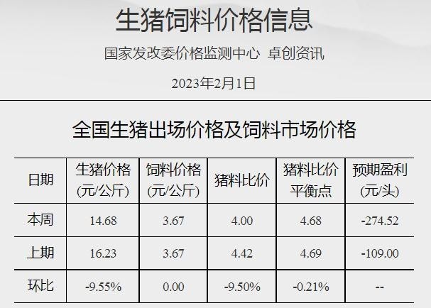 中新網(wǎng)2月6日電 據(jù)國家發(fā)改委價格監(jiān)測中心網(wǎng)站消息,截至2023年2月1日當(dāng)周,全國豬料比價為4.00,較春節(jié)前(1月18日)下降9.50%。按目前價格及成本推算,未來生豬養(yǎng)殖頭均虧損為274.52元。當(dāng)周國內(nèi)豬價以降為主。隨著春節(jié)假期收尾,終端消費(fèi)漸顯疲軟,屠宰企業(yè)開工率低位調(diào)整,整體收購難度不大,壓價情緒較濃,而養(yǎng)殖端雖有抗價情緒,但生豬出欄壓力仍存,周內(nèi)豬價小幅走低。