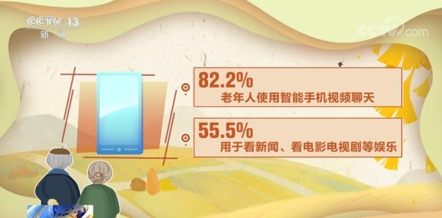 數(shù)字化對老年人生活的影響將激增。65—69歲老人使用智能手機的占比超過五成。百歲及以上老人仍有1.3%使用智能手機。82.2%老年人使用智能手機視頻聊天,55.5%用于看新聞、看電影、電視劇等娛樂。
