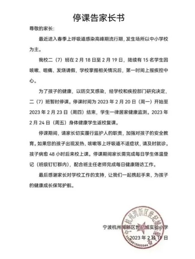 這兩天,寧波杭州灣新區(qū)世紀(jì)城實驗小學(xué)發(fā)布停課通知,引起了許多網(wǎng)友的關(guān)注。
