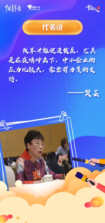 今年全國兩會(huì),樊蕓關(guān)注恢復(fù)經(jīng)濟(jì)增長和提升市場(chǎng)活力方面,“改革才能促進(jìn)發(fā)展,尤其是在疫情沖擊下,中小企業(yè)的壓力比較大,需要有力度的支持”。