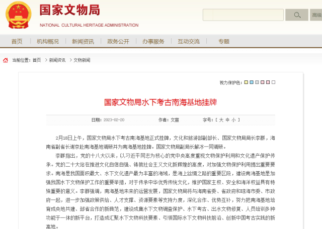 文化和旅游部副部長、國家文物局局長李群表示,南海是我國面積最大、水下文化遺產(chǎn)最為豐富的海域,是海上絲綢之路的重要區(qū)段。國家文物局將努力把南?;嘏嘤裳氲毓步?、部省合作的新典范,建設(shè)成集水下文物調(diào)查保護、水下考古、出水文物修復(fù)、人員培訓(xùn)多種功能于一體的新平臺,打造成匯聚水下文物科技要素、引領(lǐng)世界水下文物科技前沿、創(chuàng)新中國考古實踐的新高地。