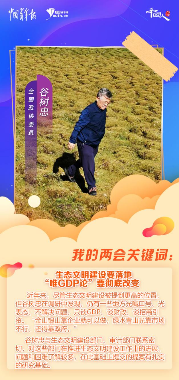 在谷樹(shù)忠看來(lái),生態(tài)文明建設(shè)要落地,一定要將責(zé)任落到主要領(lǐng)導(dǎo)身上,“唯GDP論”要徹底改變。