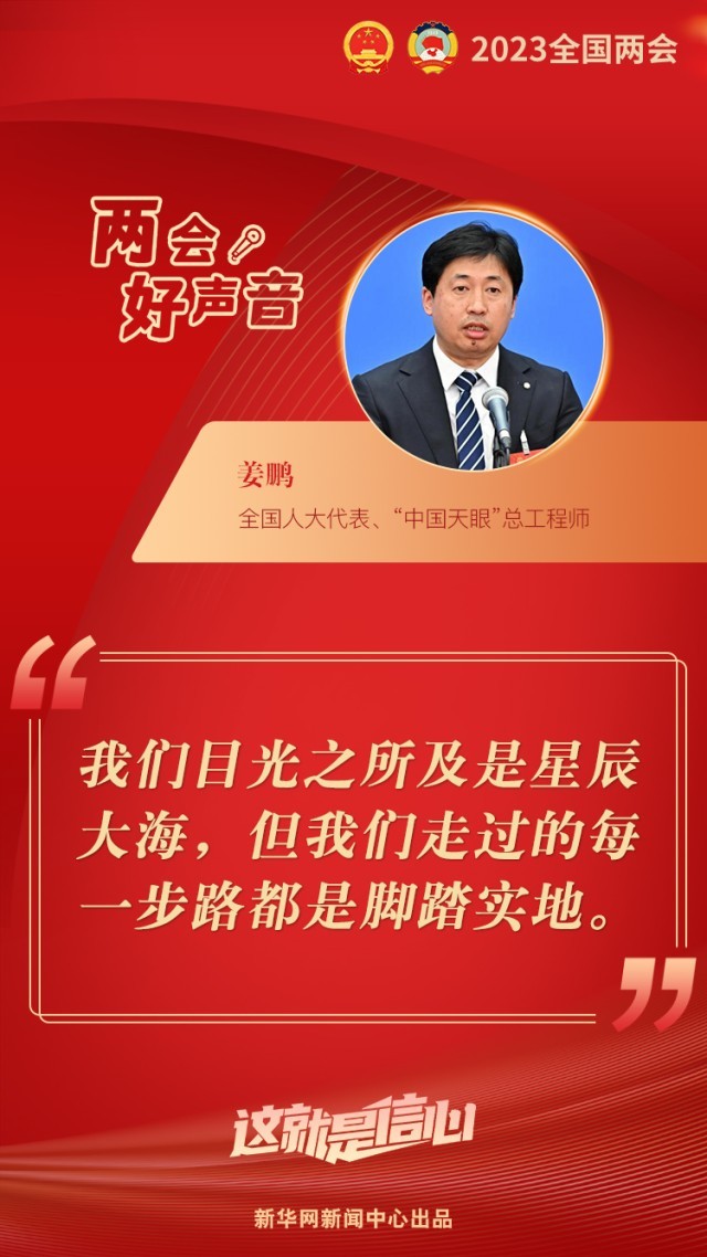 “我們目光之所及是星辰大海,但我們走過的每一步路都是腳踏實(shí)地?!?日下午舉行的第二場“代表通道”采訪活動(dòng)中,全國人大代表、“中國天眼”總工程師姜鵬感慨道。