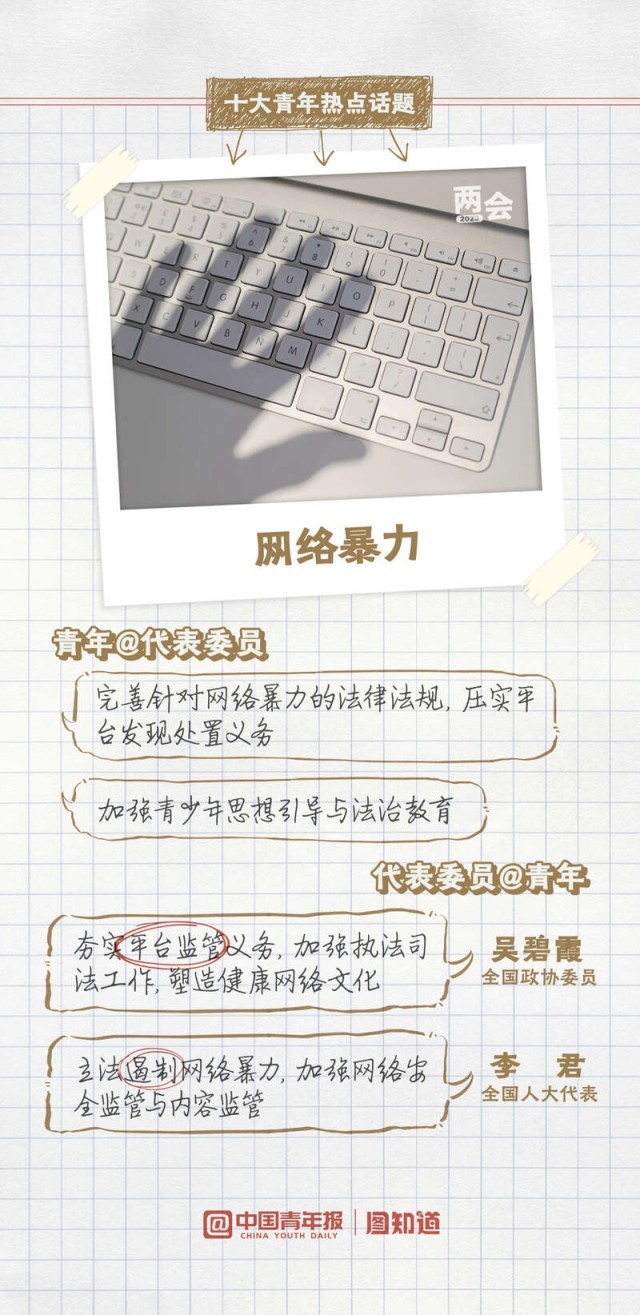 如何實現(xiàn)高質(zhì)量就業(yè)、如何破解“不敢生”、如何遏制網(wǎng)絡暴力……兩會前,團中央權益部、中國青年報社等機構聯(lián)合梳理了青年關心的十大熱點話題。這些話題也被代表委員關注,他們提出很多真知灼見。青年關心,代表委員關注,一起來看看代表委員怎么說。