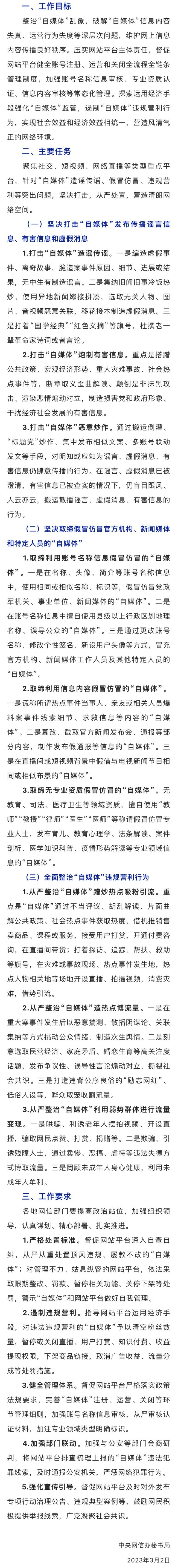 中央網(wǎng)信辦部署“清朗·從嚴(yán)整治‘自媒體’亂象”專項(xiàng)行動(dòng)