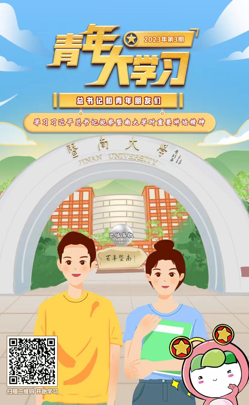 中國青年報客戶端訊(中青報·中青網(wǎng)記者 杜沂蒙)3月13日,由共青團中央宣傳部和中國青年報·中青在線聯(lián)合推出的“青年大學(xué)習(xí)”網(wǎng)上主題團課2023年第3期上線。2018年10月24日,習(xí)近平總書記到暨南大學(xué)視察并指出,我國有5000多萬海外僑胞,這是我國發(fā)展的一個獨特優(yōu)勢,改革開放有海外僑胞的一份功勞,暨南大學(xué)要堅持自己的辦學(xué)特色,把學(xué)校辦得更好,為海外僑胞回祖國學(xué)習(xí)、傳承中華文化創(chuàng)造更好條件。本期“青年大學(xué)習(xí)”網(wǎng)上主題團課“學(xué)習(xí)習(xí)近平總書記視察暨南大學(xué)時重要講話精神”,帶領(lǐng)廣大團員青年一起學(xué)習(xí)相關(guān)內(nèi)容。截至目前,“青年大學(xué)習(xí)”2023年兩會特輯參與學(xué)習(xí)互動的人數(shù)為57738080人,總點擊量為113980661。
