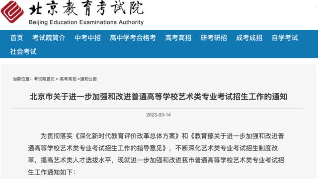 明年起北京6類藝術(shù)類專業(yè)全市統(tǒng)考 在京招生高校原則上直接采用統(tǒng)考成績