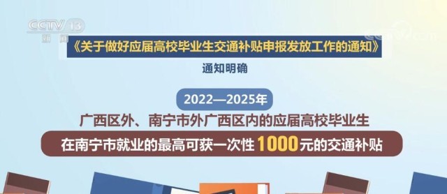 近期,南寧市人社局印發(fā)了《關(guān)于做好應(yīng)屆高校畢業(yè)生交通補(bǔ)貼申報發(fā)放工作的通知》,其中明確,2022—2025年,廣西區(qū)外、南寧市外廣西區(qū)內(nèi)的應(yīng)屆高校畢業(yè)生,在南寧市就業(yè)的最高可獲一次性1000元的交通補(bǔ)貼。
