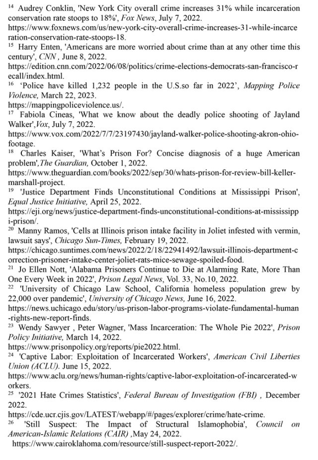 執(zhí)法司法領(lǐng)域種族歧視根深蒂固。聯(lián)合國消除種族歧視委員會(huì)的結(jié)論性報(bào)告指出,美國執(zhí)法人員對(duì)有色人種和少數(shù)族裔群體過度使用暴力并逍遙法外的情況仍然普遍存在;有色人種和少數(shù)族裔在美國司法系統(tǒng)中被逮捕、監(jiān)禁和長期虐待的情況突出。(注73)“警察暴力地圖”網(wǎng)站的數(shù)據(jù)顯示,在2013年至2022年的警察殺人事件中,非洲裔被警察殺害的可能性是白人的2.78倍,手無寸鐵的非洲裔被警察殺害的可能性是手無寸鐵的白人的1.3倍。在波士頓、明尼阿波利斯和芝加哥,非洲裔被警察殺害的可能性更是白人的20多倍。(注74)美國國家公共電臺(tái)2022年9月27日?qǐng)?bào)道,國家免責(zé)登記處發(fā)布的報(bào)告指出,非洲裔在美國人口中所占比例不到14%,但在美國被誤判犯有嚴(yán)重罪行并在至少服完部分刑期后獲釋的所有人中,非洲裔占了53%;美國非洲裔因三項(xiàng)重大罪行被錯(cuò)誤定罪的可能性是白人的7倍,非洲裔因毒品犯罪被錯(cuò)誤定罪的可能性是其他人的19倍。(注75)美國國家學(xué)院出版的《美國監(jiān)禁的增長:探索原因和后果》一書指出,滲透著種族主義的刑事司法系統(tǒng)“正日益成為一個(gè)更大的污名化和長期邊緣化系統(tǒng)的主要通道”。(注76)