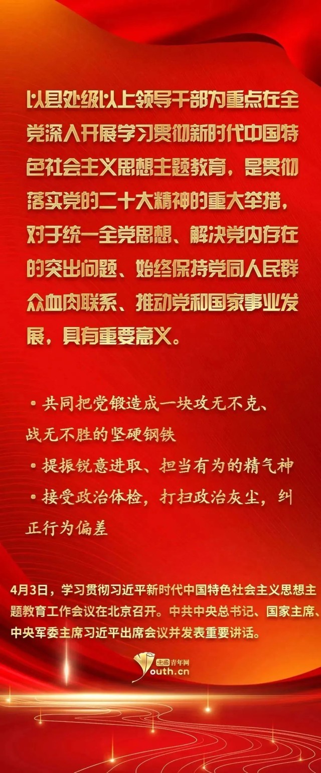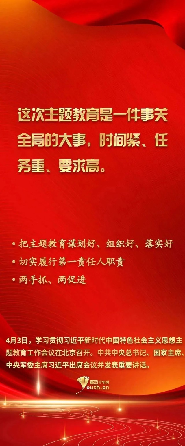4月3日,學習貫徹習近平新時代中國特色社會主義思想主題教育工作會議在北京召開。中共中央總書記、國家主席、中央軍委主席習近平出席會議并發(fā)表重要講話。