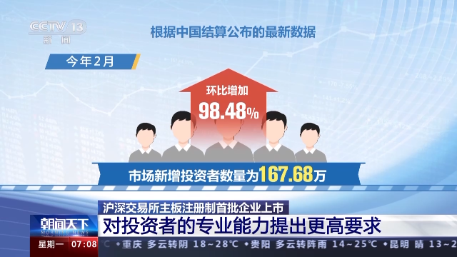 根據(jù)中國結算公布的最新數(shù)據(jù),今年2月,市場新增投資者數(shù)量為167.68萬,環(huán)比增加98.48%,這是時隔4個月之后,市場單月新增投資者數(shù)量再次超過百萬。截至2月末,我國A股投資者已達到2.14億。專家表示,全面實行注冊制,一些市場規(guī)則隨之調(diào)整,投資者需要審慎進行判斷。