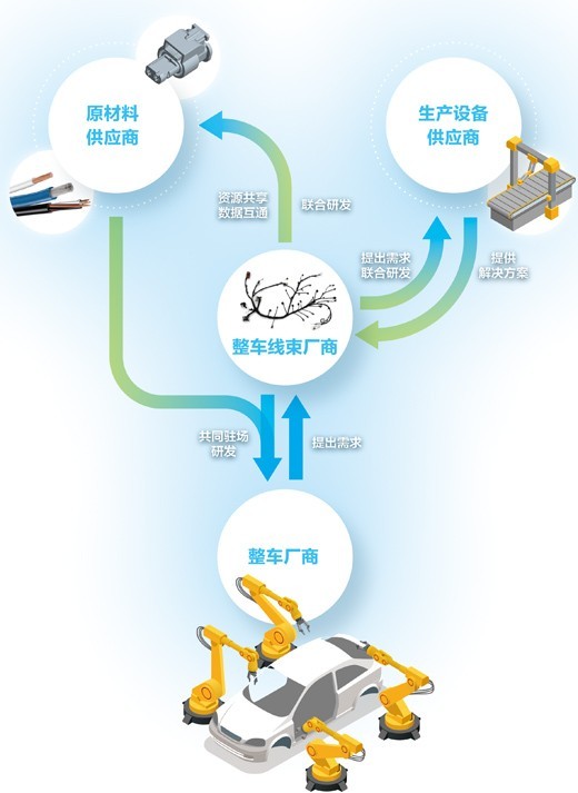 以汽車電路的主體——整車線束為例,僅圍繞一家龍頭民營(yíng)企業(yè),就有近50家供應(yīng)商聚集昆山,在這條成熟的產(chǎn)業(yè)鏈上,上下游分工明確,供需合作緊密。