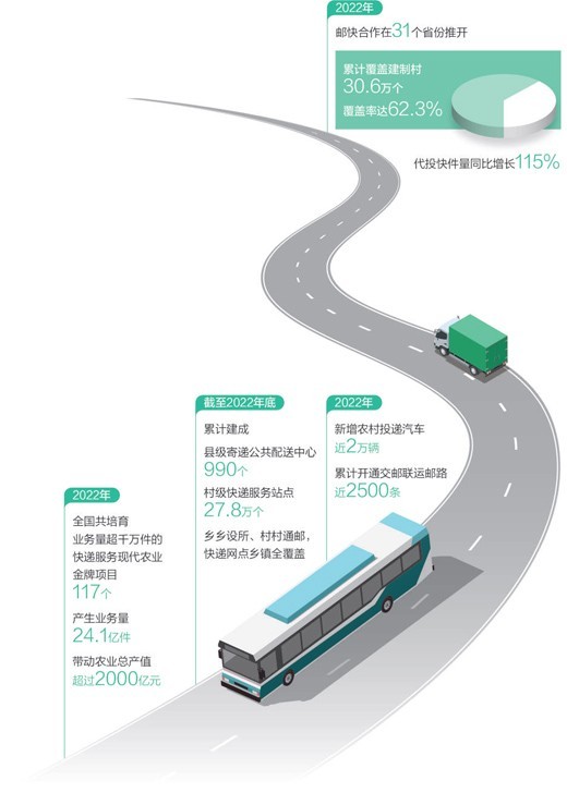 放眼全國,每天,1億多件快遞包裹在農(nóng)村地區(qū)流動。隨著農(nóng)村寄遞物流體系的加快建設(shè)和快遞進村覆蓋率的持續(xù)提升,快遞業(yè)將進一步發(fā)揮在促進消費升級、暢通經(jīng)濟循環(huán)方面的作用,為促進城鄉(xiāng)商品流通、拓展農(nóng)村消費、推進鄉(xiāng)村振興貢獻力量。