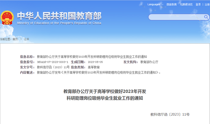 中國(guó)青年報(bào)客戶端北京5月9日電(中青報(bào)·中青網(wǎng)記者 葉雨婷)記者今天從教育部獲悉,教育部辦公廳發(fā)布“關(guān)于高等學(xué)校做好2023年開(kāi)發(fā)科研助理崗位吸納畢業(yè)生就業(yè)工作的通知”指出,要加強(qiáng)組織領(lǐng)導(dǎo),統(tǒng)籌科研、人事、財(cái)務(wù)、就業(yè)等相關(guān)部門,充分挖掘資源和自身潛力,切實(shí)推進(jìn)開(kāi)發(fā)科研助理崗位吸納2023屆高校畢業(yè)生就業(yè)工作。教育部將把科研助理崗位及實(shí)聘人數(shù)作為安排推薦免試攻讀研究生名額的重要參考因素。