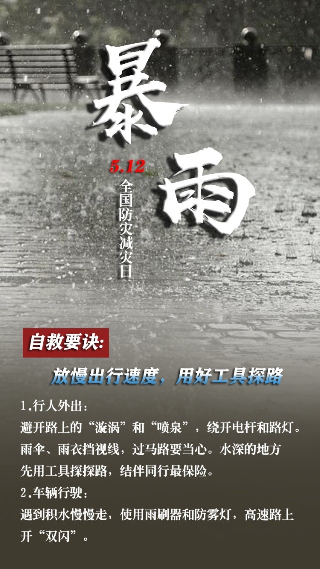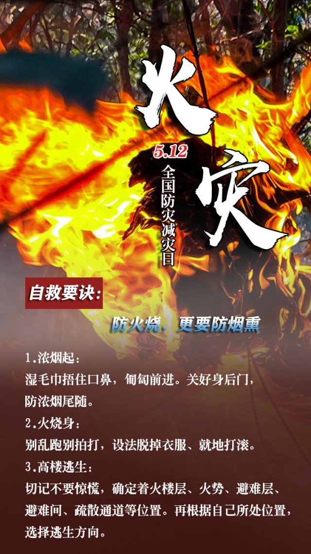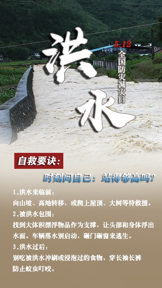 今天是第15個全國防災(zāi)減災(zāi)日。自然災(zāi)害隨時可能發(fā)生,及時自救才更有生存希望。地震來時,如何抓住12秒黃金逃生時間?發(fā)生火災(zāi)時,如何躲避火場濃煙?暴雨天如何安全出行?沙塵天氣如何做好防護(hù)……這份實用避險口訣簡單好記,請速速收藏。
