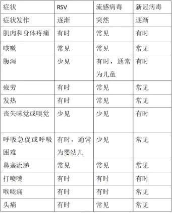 針對年初到現(xiàn)在流行的新冠病毒、甲型流感病毒和呼吸道合胞病毒,唐蘭芳解釋說,這三種病毒都是通過呼吸道傳播、且傳染性強的病毒,均會引起發(fā)熱、咳嗽及鼻塞流涕等癥狀,因此有時很難區(qū)分感染了哪種病毒,雖然這些病毒有不少相似的癥狀,但也有一些區(qū)別,如流感病毒感染潛伏期短,通常是突然發(fā)熱,高熱為主,而另外兩種則是逐漸發(fā)病,且呼吸道合胞病毒感染的患兒中腹瀉較為少見,可以參考表格內(nèi)容,明確診斷的話建議行相關(guān)核酸或抗原檢測。
