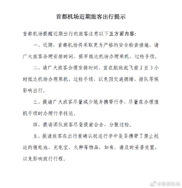 首都機(jī)場:近期將采取更為嚴(yán)格的安檢措施