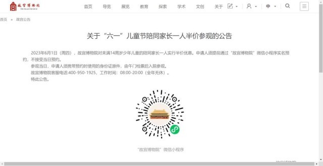故宮:“六一”帶未滿(mǎn)14歲兒童參觀,一名家長(zhǎng)半價(jià)