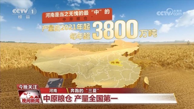 而說到這些大糧倉中的“C位”,河南是當之無愧的最“中”的“中原糧倉”。河南小麥的產(chǎn)量自2021年起每年超3800萬噸,占中國的近1/4,位居全國第一。