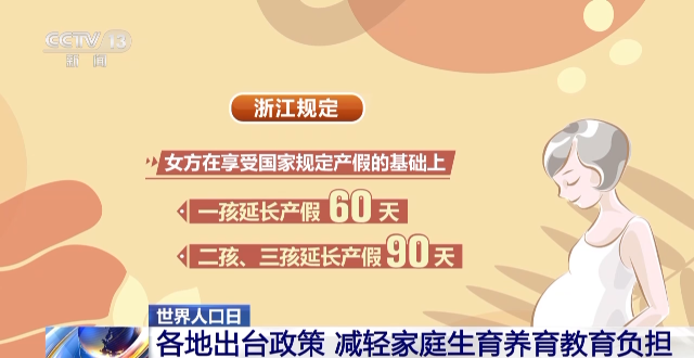 大多數(shù)省份都延長了產(chǎn)假,明確了育兒假。浙江規(guī)定,女方在享受國家規(guī)定產(chǎn)假的基礎(chǔ)上,一孩延長產(chǎn)假60天,二孩、三孩延長產(chǎn)假90天。