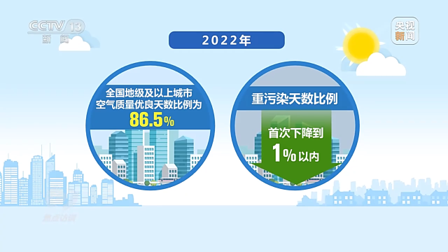 不僅北京,十年來,全國重點(diǎn)城市PM2.5平均濃度下降57%。2022年,全國地級及以上城市空氣質(zhì)量優(yōu)良天數(shù)比例為86.5%,重污染天數(shù)比例首次下降到1%以內(nèi)。我國成為全球大氣質(zhì)量改善速度最快的國家,藍(lán)天保衛(wèi)戰(zhàn)正在給百姓帶來實(shí)實(shí)在在的幸福感。