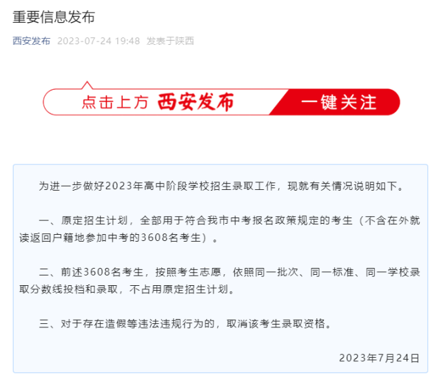 為進(jìn)一步做好2023年高中階段學(xué)校招生錄取工作,現(xiàn)就有關(guān)情況說(shuō)明如下。