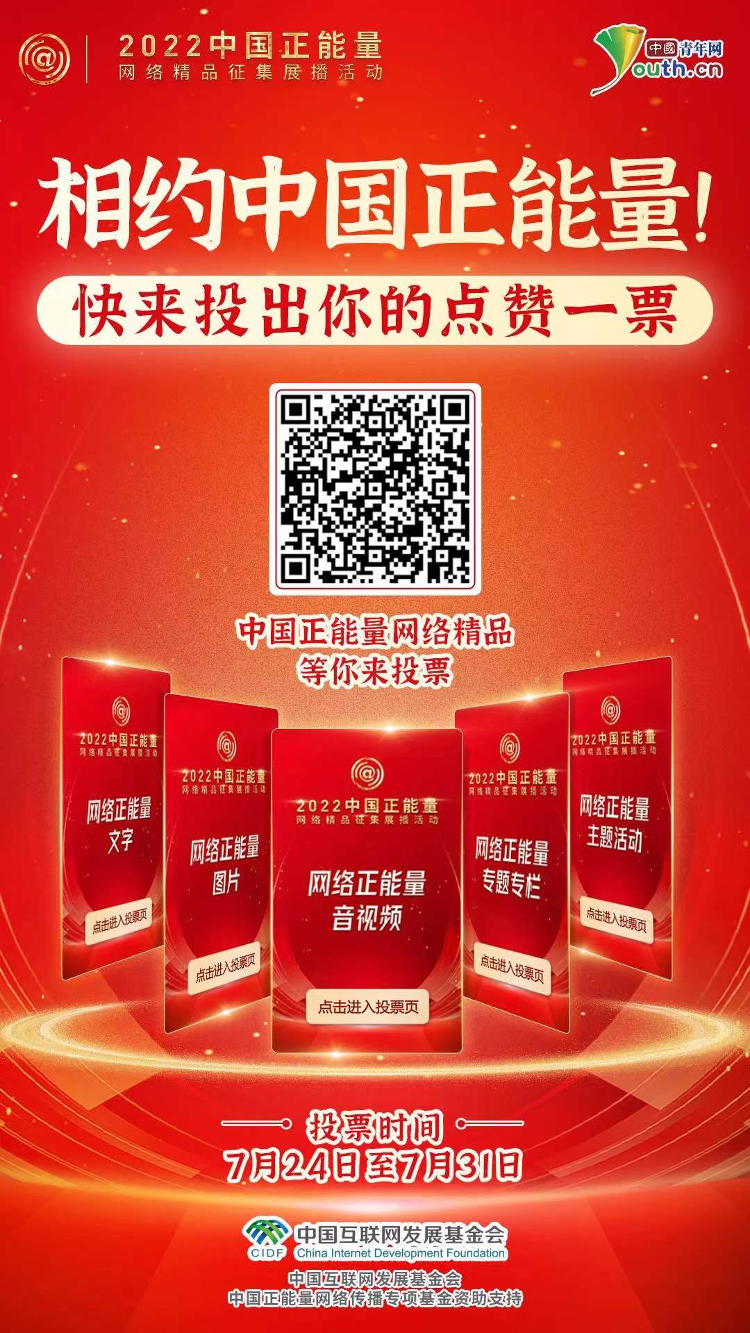 2022中國正能量網(wǎng)絡(luò)精品征集展播活動啟動網(wǎng)絡(luò)展播投票。約1100件作品從報送作品中脫穎而出進(jìn)入終選,它們謳歌偉大時代、樹立中國榜樣、點贊砥礪足音,營造清朗的網(wǎng)絡(luò)空間。網(wǎng)絡(luò)展播投票已接近尾聲,邀請廣大網(wǎng)友在線投出點贊一票,于正能量作品中汲取澎湃動能。(潘曉文 朱鈞有)