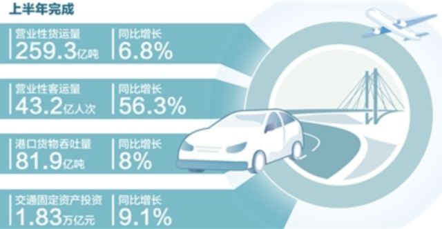 完成營業(yè)性貨運(yùn)量259.3億噸,同比增長6.8%;完成交通固定資產(chǎn)投資1.83萬億元,繼續(xù)保持高位運(yùn)行……7月31日,交通運(yùn)輸部發(fā)布數(shù)據(jù)顯示,上半年,交通運(yùn)輸經(jīng)濟(jì)運(yùn)行穩(wěn)中向好,既有量的合理增長,也有質(zhì)的有效提升。