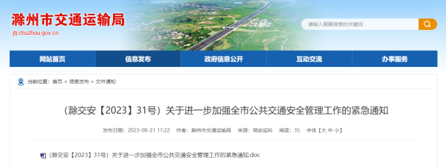 8月20日中午,來安城鄉(xiāng)公交有限公司一輛公交車在南京林場附近突然起火,造成2人死亡、5人受傷。為深刻吸取事故教訓,確保公共交通安全,切實保障人民群眾生命財產(chǎn)安全,現(xiàn)就加強全市公共交通安全管理工作緊急通知如下: