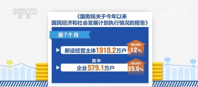 報告指出,前7個月,新設(shè)經(jīng)營主體1910.2萬戶,其中企業(yè)579.1萬戶,同比分別增長12%和15.6%;股票發(fā)行注冊制改革全面落地,前7個月共有210家企業(yè)首次公開發(fā)行(IPO)上市、融資2479億元。