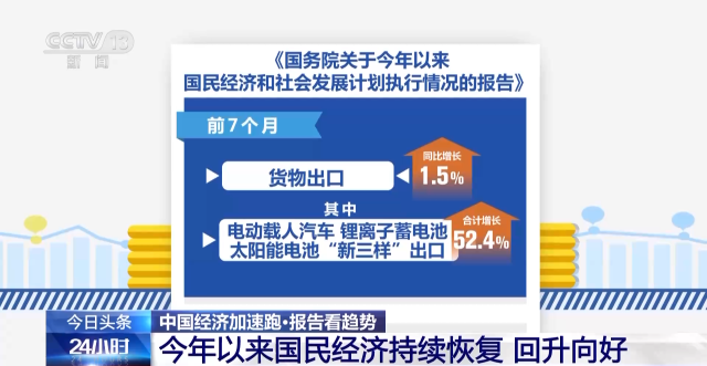 報告指出,前7個月貨物出口同比增長1.5%,其中電動載人汽車、鋰離子蓄電池、太陽能電池“新三樣”出口合計(jì)增長52.4%。知識密集型服務(wù)貿(mào)易較快增長,旅行服務(wù)貿(mào)易明顯恢復(fù),上半年服務(wù)進(jìn)出口同比增長8.5%。推動外資標(biāo)志性項(xiàng)目落地實(shí)施,外貿(mào)外資平穩(wěn)發(fā)展。