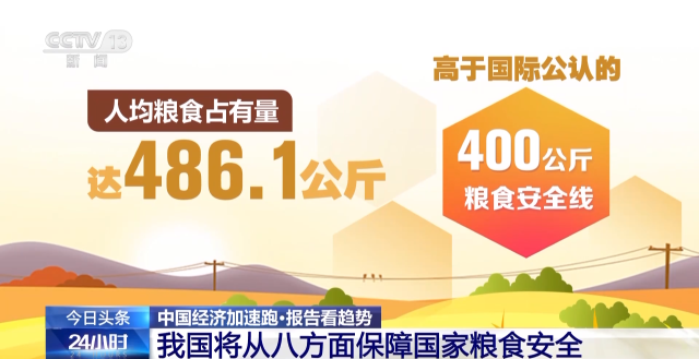 《國務(wù)院關(guān)于確保國家糧食安全工作情況的報告》顯示,我國糧食產(chǎn)量連續(xù)8年穩(wěn)定在1.3萬億斤以上,2022年糧食產(chǎn)量13731億斤,糧食單產(chǎn)每畝386.8公斤,較5年前分別提升了498億斤、13公斤;人均糧食占有量達(dá)486.1公斤,高于國際公認(rèn)的400公斤的糧食安全線。